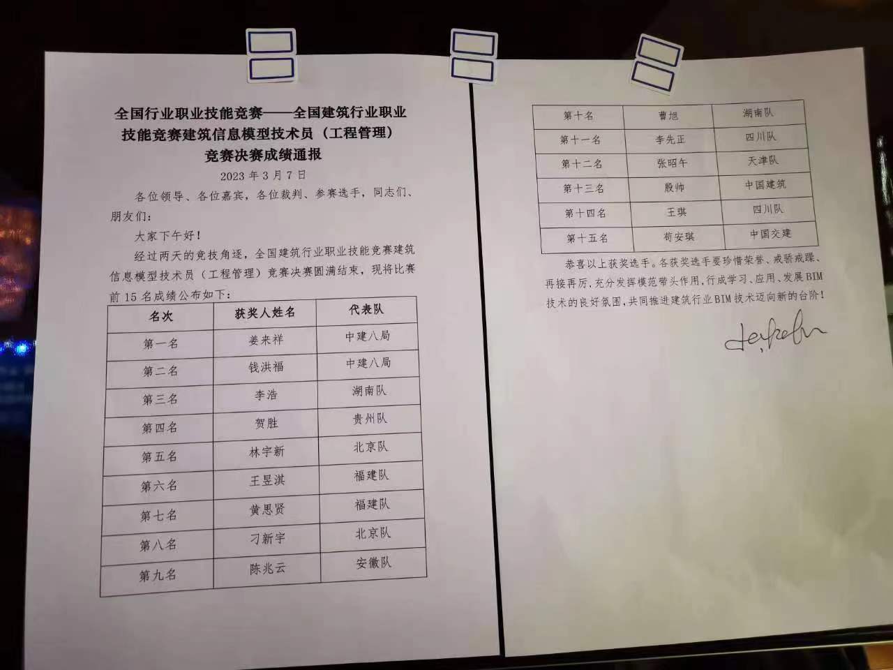 (图1 全国建筑行业职业技能竞赛成绩通报)