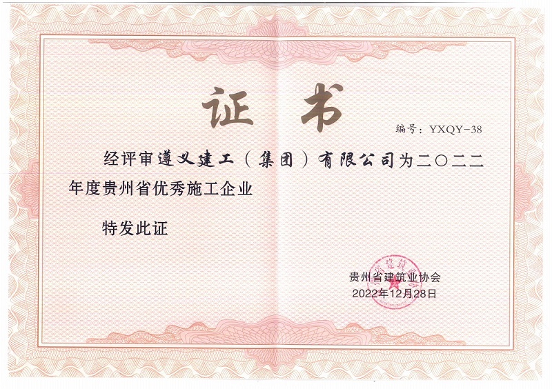 近日,贵州省住建厅、贵州省建筑业协会通报了2022年度贵州省优秀施工企业评选结果,遵义建工(集团)有限公司再次光荣上榜,已连续十五年获此荣誉。